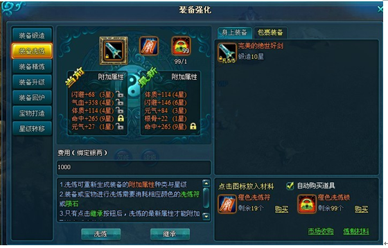 洗炼小提示:附加属性最极品的肯定是攻击以及防御了,经过多次的尝试总结,首先要洗出攻击以及防御的高星级附加属性,然后锁定后再进行其他属性的洗炼,不然洗炼高等级的攻击或防御较难;