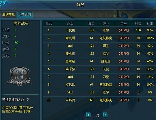 4、每次比赛都需要玩家手动点击【点击参赛】开始排队,先点击的先进行比赛;
