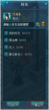 4、新增一键征友功能,玩家点击“一键征友”,系统自动搜寻附近在线玩家,随机向一位玩家发出添加好友的请求,初涉江湖的您会找到携手闯荡伙伴吗?