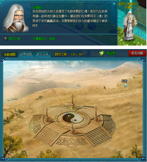 队伍可从长安的NPC封印之地接引人宁道奇(长安64,65)处进入封印之地,每天仅有珍贵的1次进入机会,同时每次进入时间最长20分钟,超时将被判断为失败而传出副本,副本时间内中途掉线重新登录时,依然会在副本入口处。