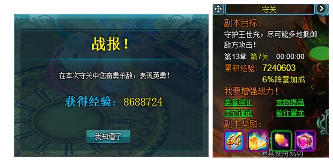 玩家可获得大量的守关经验奖励,同时玩家等级越高获得经验奖励越丰厚;