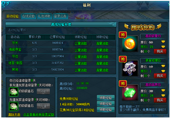 每天为您寻回由于活动方面以及离线的累积经验,避免不必要的经验丢失。