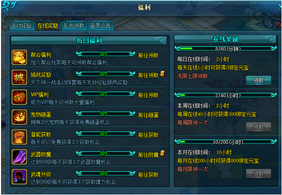 福利的在线奖励将提示玩家每天登陆时候所能获得的福利,各种奖励一一为您呈现!