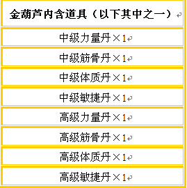 活动规则:阴阳关(单/多)40波、50波的boss、火焰山boss、瑶池宫boss有几率掉落金葫芦种子,种植在仙园后可获得金葫芦,使用后有几率获得各种状态药