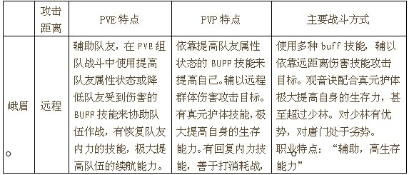 地理位置:峨嵋派位于四川峨嵋山。与成都、青城山和长江源头都非常接近。武功特点、职业特点(玩法):