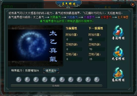 D)每个境界分为十重,每重都会增加人物的真气伤害、忽视防御、忽视闪避三个强大属性!如图