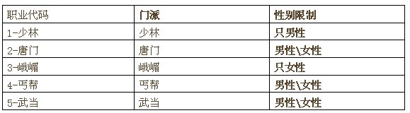门派与性别限制玩家进入游戏时,可根据性别选择不同的人物头像