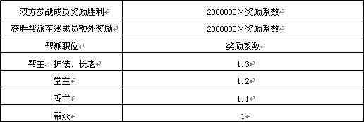 3、 若有多个帮派威望相同,则根据帮派的总威望决定挑战资格,总威望最高的帮派获得挑战资格。