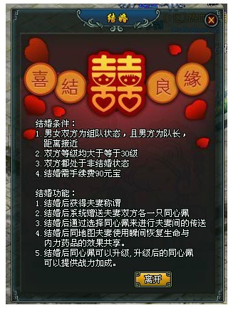 男女双方距离必须接近,具体参照组队系统,不能为远离状态