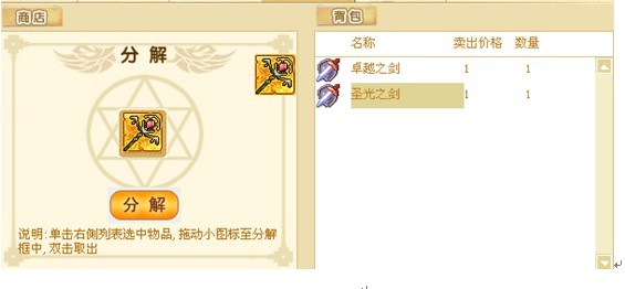 2.只有身体、鞋子、武器、翅膀、宝石、道具才能进行分解。