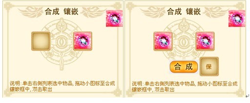 合成步骤:进入中心城镇-铁匠铺-合成镶嵌界面,单击选中右侧列表中水晶物品,将界面右上角的水晶图标拖入界面方框中,单击合成按钮即可,如图显示: