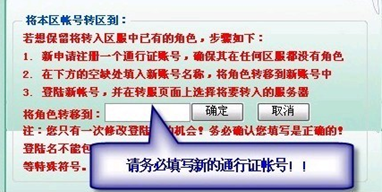 2.在下方的空缺处填入新的通行证账号,将角色转移到新账号中(如图一)