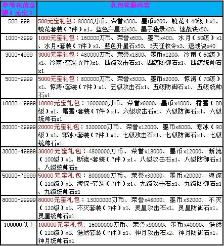活动内容: 活动期间单笔充值达到指定额度即可获得相应的礼包一份