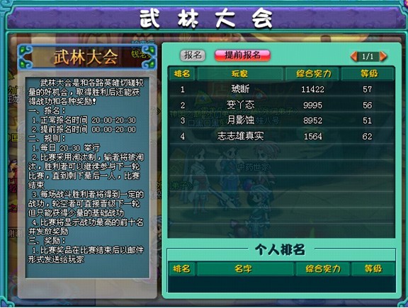 玩家报名后,系统自动分配进行战斗,采用淘汰制的方式进行比赛!