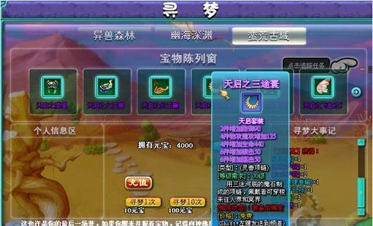 不同地图寻梦一次需要消耗10000银子或者10元宝
