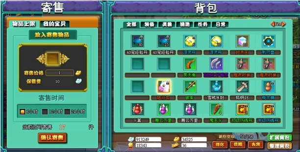 玩家可以通过‘万宝阁’寄售需要出售的物品,其他玩家可以在‘万宝阁’中查看所有正在出售的物品,选择购买。