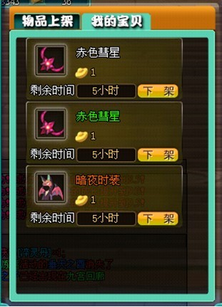玩家可以在‘我的宝贝’界面查看当前正在寄售的物品,并且对其进行‘上架’‘下架’的操作!