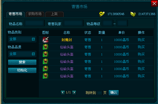 寄售市场,顾名思义,是玩家买卖交易的场所。在这里,大家可以购买其他玩家寄售的物品和道具,不过在购买前,记得看清楚单价。琳琅满目的商品,一定也还有不同单价的相同商品,买家一定会去选择较为便宜性价比更高的。左侧得搜索栏就为大家提供了这样的便利。