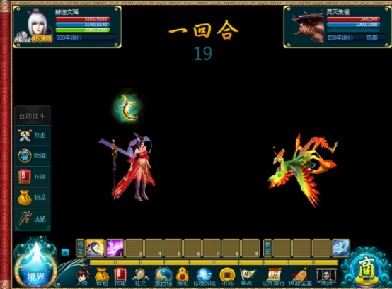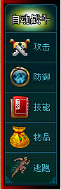 战斗时可施放技能、普通攻击、防御、使用物品以及逃跑。
