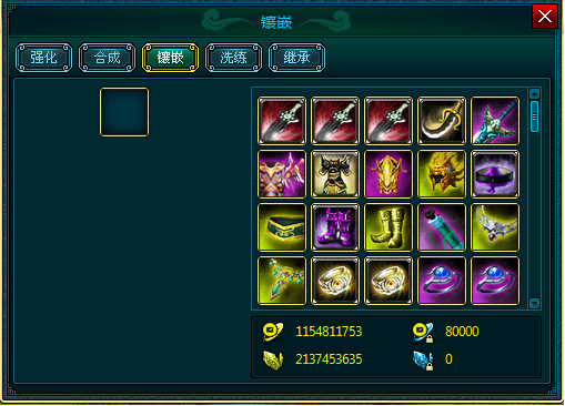 点击装备进入镶嵌栏(不同品质装备孔数不同)