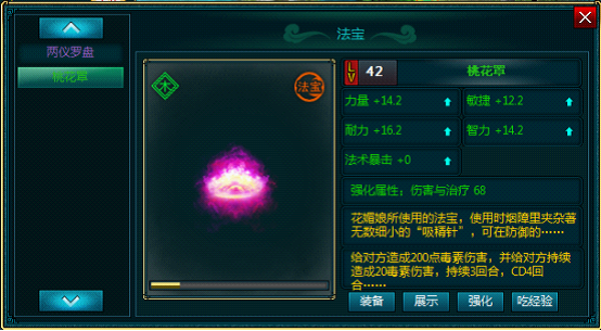 显示已拥有法宝及当前法宝详细属性说明
