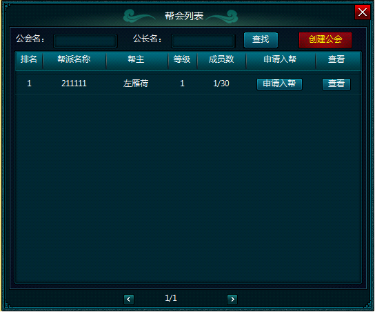 帮会列表:查看当前所有帮会。