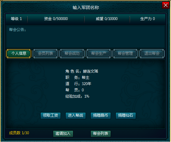 创建完成之后进入帮会界面。