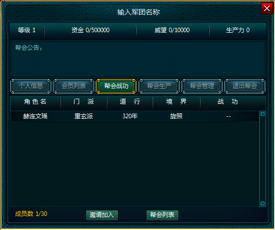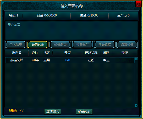 会员列表:显示帮会所有成员基本信息。
