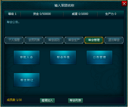 邀请加入:邀请好友加入帮会;
