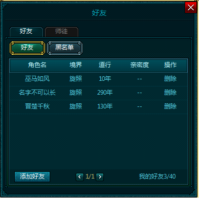师徒仙缘:显示当前可产生师徒关系列表。
