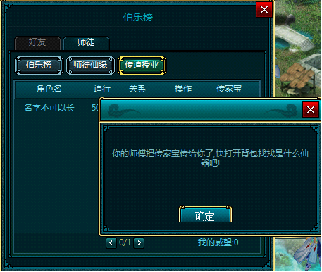 传道授业:拜师成功后,师傅可发放传家宝;徒弟可以问候师傅。