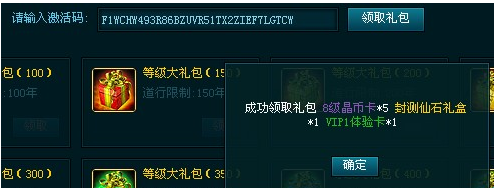 40级玩家,领取VIP5 300万游戏币1500仙石