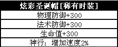 6、活动期间,玩家击杀稀有雪人还有一定几率获得麋鹿圣诞帽[普通]【时限30天】,玩家也可用麋鹿圣诞帽[普通]]*10在礼官处可以合成炫彩圣诞帽[圣器] ;