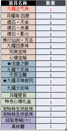 2、新增:九曜五气珠、心情宝箱*1、经验卷轴(小)*1 、特色心情礼盒*1