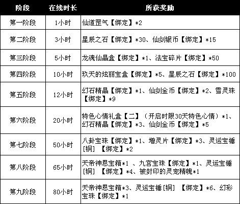 注:需要完成上一阶段任务后才能接受下一阶段的任务,并且在线累计时间重新计算;