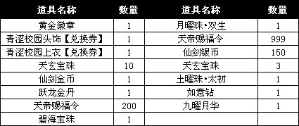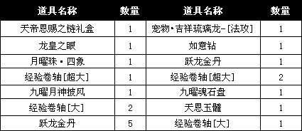 活动奖励:(下列奖励除特殊说明外均为非绑定道具)