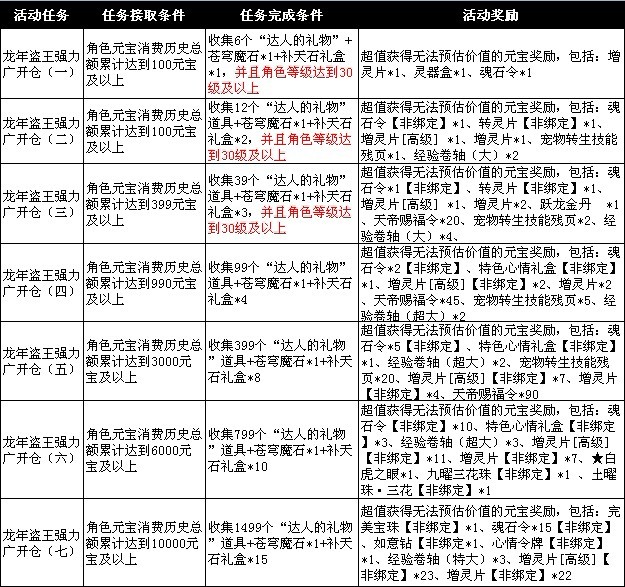 注:活动奖励,除特殊说明外,均为绑定道具。