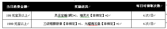 1、只要在活动期间消费元宝达到活动条件的玩家,请在活动期间在游戏内置活动功能页面内及时领取;