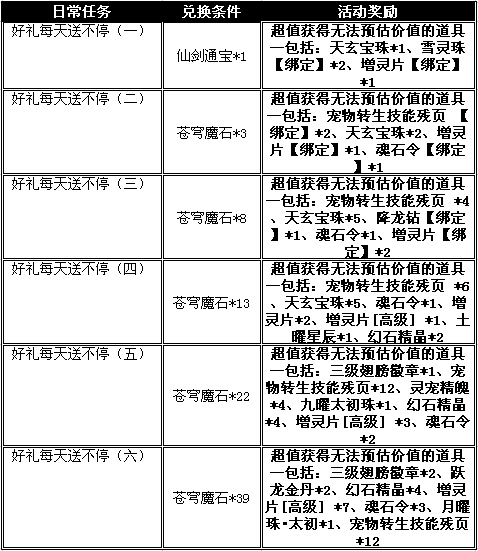 活动奖励:(下列奖励除特殊说明外均为非绑定道具)