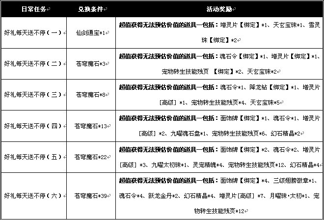 注意:活动奖励除特殊说明外,均为绑定道具。