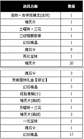 活动奖励:(下列奖励除特殊说明外均为非绑定道具)
