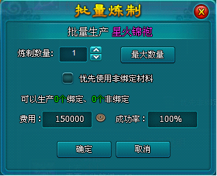 如果想要一次性炼制多个物品,也可以使用“批量炼制”,当然,前提是需要备齐足够的材料和铜钱。