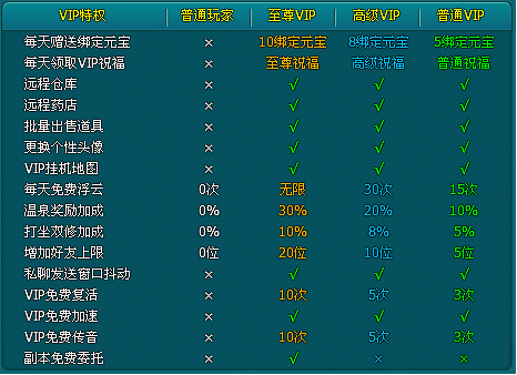 玩游戏还是买个VIP好。下面附图一张,让你不进游戏就能知道都有些啥: