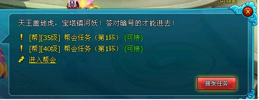 其次是38级的时候可以加入帮派。这个时候一定要加入帮派以后再做任务,因为40级有新一轮的帮派任务,如果你在40级前没有做的话那就消失了,经验很客观的!。