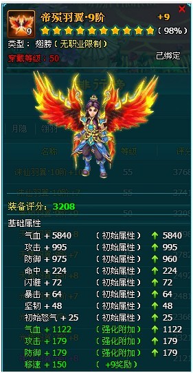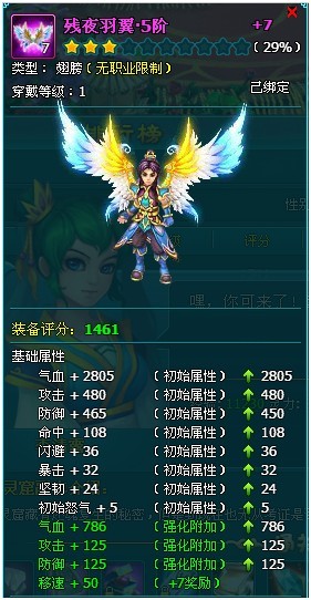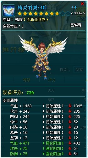 1、羽翼进阶成功可提升基础属性并增加羽翼形象,进阶失败也可增加祝福值
