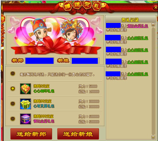 宾客还可以向新人发送祝福的礼品