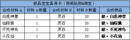 ·珍稀宝宝真身卡是用普通变身卡道具(活动赠送)+灵石道具(新增道具)在制作-宝宝道具中合成获得。