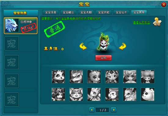 真身幻化是指:使用新的宝宝真身卡道具,宝宝会化为变身卡对应的宝宝形象,从此获得该宝宝形象,可在宝宝图鉴中随时变换为该宝宝形象;并且同时获得宝宝真身属性。