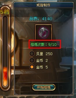 (1)熔炼装备需熔炼满10次才能完成制作,完成制作后根据熔炼物品品质可以获得相对应随机等级和品质的装备。