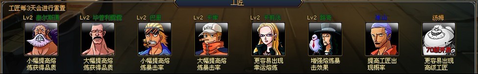 (2)在每次进行熔炼时,都会有一定机率触发“工匠”,不同“工匠”会对装备熔炼会带来不同的增益效果。